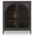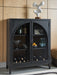 If your love of entertaining is only surpassed by your love of sleek, versatile style, this bar cabinet expertly suits your needs. Racks for wine bottles and glasses neatly store necessities for a pour of vino. Adjustable shelves comfortably hold additional bottles, dishware or drink-making accessories. For added flexibility, the cabinet's black and natural brown finishes effortlessly pair with your home’s existing aesthetic. Doors with softly curved glass inserts allow this chic piece to double as a display space.