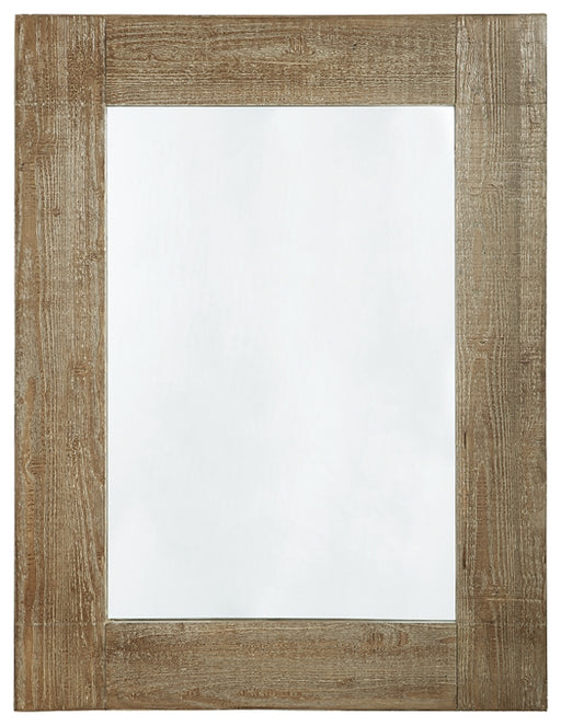 Signature Design by Ashley®This accent mirror merges casual style with a clean, linear profile for a simple-yet-striking look. Its distressed brown finish has an enduring cha...