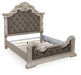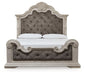 Bruchandi California King Upholstered Panel Bed with Mirrored Dresser and Nightstand