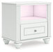 | Details | PCB1819B10: Includes upholstered panel headboard, panel footboard, roll slats and side storage with rails, Made with engineered wood (MDF/particleboard/plywood) and decorative laminate for the right balance of affordability and durability , Matte white finish, Decorative laminate replicates natural or man-made material surfaces with consistent color, pattern and texture , Light gray polyester upholstery on headboard, Crystal drawer knobs; acrylic ball tops, 2 smooth-gliding drawers; drawer interiors are lined with a faux linen laminate for a clean, finished look, Open cubbies accommodate any 10.5" W x 10.5" D x 11" H storage bin (not included), LED light strip with remote-controlled color and brightness options; included remote holder keeps remote for lights discreet and accessible, Power cord included; UL Listed, Bed does not require additional foundation/box spring; accommodates most zero clearance adjustable bases with the addition of a bunkie board, Mattress available, sold separately, Minor assembly required, PCB1819B2: Includes dresser and mirror, Made with engineered wood (MDF/particleboard/plywood) and decorative laminate for the right balance of affordability and durability , Matte white finish, Decorative laminate replicates natural or man-made material surfaces with consistent color, pattern and texture , Crystal drawer knobs, 6 smooth-gliding drawers, Drawer interiors are lined with a faux linen laminate for a clean, finished look, Safety is a top priority, clothing storage units are designed to meet the most current standards for stability, ATM F 2057 (ASTM International), Drawers extend out to accommodate maximum access to drawer interior while maintaining safety, Mirror can be mounted on wall vertically , Minor assembly required, PCB1819-91: Made with engineered wood (MDF/particleboard/plywood) and decorative laminate for the right balance of affordability and durability, Matte white finish, Decorative laminate replicates natural or man-made material surfaces with consistent color, pattern and texture, Crystal drawer knob, 1 smooth-operating drawer, Drawer interior is lined with a faux linen laminate for a clean, finished look, Open shelf, USB-A and USB-C charging ports, Pink, purple and white LED lighting options; touch button control, Power cord included; UL Listed, Minor assembly required, | |