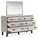 | Details | B1036B5: Includes queen panel headboard, footboard, rails, headboard extensions and 2 nightstands, Made with engineered wood (MDF/particleboard/plywood) and decorative laminate for the right balance of affordability and durability, Light gray finish over a replicated oak grain with authentic touch; base has matte black finish with subtle replicated wood grain, Decorative laminate replicates natural or man-made material surfaces with consistent color, pattern and texture, Handles with matte black finish, Headboard extensions mount to nightstands; each includes shelf with warm LED lighting underneath, 2 smooth-gliding drawers; drawer interiors are lined with a faux linen laminate for a clean, finished look, Each nightstand has Qi wireless charging and 1 USB charging port, Foundation/box spring required, sold separately; mattress available, sold separately, Power cord included; UL Listed, Assembly required, B1036B1: Includes dresser and mirror, Made with engineered wood (MDF/particleboard/plywood) and decorative laminate for the right balance of affordability and durability, Light gray finish over a replicated oak grain with authentic touch; base has matte black finish with subtle replicated wood grain, Decorative laminate replicates natural or man-made material surfaces with consistent color, pattern and texture, Handles with matte black finish, 6 smooth-gliding drawers, Drawer interiors are lined with a faux linen laminate for a clean, finished look, Mirror attaches to back of dresser; can also be hung horizontally or vertically, Safety is a top priority, clothing storage units are designed to meet the most current standard for stability, ASTM F 2057 (ASTM International), Drawers extend out to accommodate maximum access to drawer interior while maintaining safety, Assembly required, | |