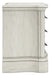 | Details | B980B2: Includes headboard, footboard and rails, Made with hardwood solids, spruce veneer, MDF substrates and cast resin components , Antiqued white painted finish, Polyester upholstery, Button tufting, Foundation/box spring required, sold separately, Mattress available, sold separately, Assembly required, B980B1: Includes dresser and mirror, Made with hardwood solids, spruce veneer, MDF substrates and cast resin components, Antiqued white painted finish, 9 drawers with fully finished interiors, French and English dovetail construction and ball-bearing side glides, Metal bar pulls with aged pewter-tone finish, Mirror attaches to back of dresser, B980-93: Made with hardwood solids, spruce veneer, MDF substrates and cast resin components, Antiqued white painted finish, 3 drawers with fully finished interiors, French and English dovetail construction and ball-bearing side glides, Metal bar pulls with aged pewter-tone finish, 110V power supply with dual USB charging ports, Power cord included; UL Listed, | |