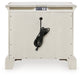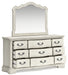 Details B980B2: Includes headboard, footboard and rails, Made with hardwood solids, spruce veneer, MDF substrates and cast resin components , Antiqued white painted finish, Polyester upholstery, Button tufting, Foundation/box spring required, sold separately, Mattress available, sold separately, Assembly required, B980B1: Includes dresser and mirror, Made with hardwood solids, spruce veneer, MDF substrates and cast resin components, Antiqued white painted finish, 9 drawers with fully finished interiors, French and English dovetail construction and ball-bearing side glides, Metal bar pulls with aged pewter-tone finish, Mirror attaches to back of dresser, B980-46: Made with hardwood solids, spruce veneer, MDF substrates and cast resin components, Antiqued white painted finish, 5 drawers with fully finished interiors, French and English dovetail construction and ball-bearing side glides, Metal bar pulls with aged pewter-tone finish, B980-93: Made with hardwood solids, spruce veneer, MDF substrates and cast resin components, Antiqued white painted finish, 3 drawers with fully finished interiors, French and English dovetail construction and ball-bearing side glides, Metal bar pulls with aged pewter-tone finish, 110V power supply with dual USB charging ports, Power cord included; UL Listed,