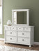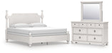 | Details | PCB823B4: Includes headboard/footboard panels, posts and poster rails , Made with hardwood solids, veneers and MDF substrates , Side rails feature laminated solid hardwood slat support rails (or LVL) with glued and screwed blocking for added strength, Rubbed antiqued white finish , Foundation/box spring required, sold separately, Mattress available, sold separately , Assembly required, PCB823B1: Includes dresser and mirror, Dresser made with hardwood solids, veneers and MDF substrates , Mirror made with solid wood, Rubbed antiqued white finish, Metal hardware with pewter-tone finish, 8 smooth-gliding drawers with fully finished interiors, French/English dovetail construction and heavy-duty ball-bearing side glides, Top drawers felt lined, Mirror attaches to back of dresser, | |
