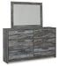 Casually cool style and lots of storage go hand in hand with this dresser with mirror. Its driftwood and smoky finish create an easy-going vibe that's perfect for setting the scene of a relaxed getaway. Six roomy drawers give you the space needed for stowing away clothes and more. Clean lines and modern handles provide a fuss-free look.