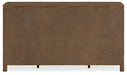 This dresser sits comfortably at the intersection of modern lodge and farmhouse aesthetics. Your warm and welcoming disposition is reflected in the charming architectural elements and light brown glazed finish. Even with its poise, the dresser remains practical. Smooth-gliding drawers tuck away necessities, defining your bedroom with reliable function and style.
