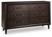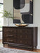 Details Made with hardwood solids, mango wood veneer and MDF substrates, Merlot finish, Solid wood pulls with brass-tone metal accents, 6 smooth-gliding drawers with fully finished interiors, French/English dovetail construction and heavy-duty ball-bearing side glides, Top drawers felt lined, Round tapered legs