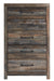 When merged in just the right way, rustic and industrial styles can make one happy marriage. Case in point: this bedroom chest. A refined take on barn board beauty, its complex, replicated wood grain showcases hints of burnt orange and teal tones for a sense of weatherworn authenticity. Elongated drawer pulls elevate the aesthetic.