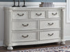 Transform your inner sanctum into a haven of timeless elegance and functionality. This traditionally styled dresser is adorned in a classic antiqued white finish, highlighted by a serpentine-shaped front with thick decorative moulding. Its drawers are packed with ample storage possibilities. And did we mention the stylish reeded bun feet? Talk about relaxed refinement.