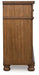 Taking a laid-back approach to casual traditional design, this artfully crafted dresser combines classic elements with a clean modern approach. Its rich medium brown wood tone exudes a comfy, timeless appeal that's sure to carry you away to a dreamy time and place. Simple round metal knobs and ring pulls on the dresser's spacious drawers make just the right statement.