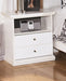 Details Made of engineered wood (MDF/particleboard), Pewter-tone knobs, 1 smooth-operating drawer, 1 storage cubby, Scalloped moulding, Small Space Solution