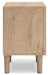 Clean-lined and contemporary—but far from stark—this nightstand is a fresh style awakening. Pairing a light finish with replicated oak grain and textured beige details that replicate the look of cane, its mixed materials bring a naturally versatile vibe to your bedroom. Sleek, simple hardware plays perfectly with the modern aesthetic. A smooth-gliding drawer and USB charging keep your clutter contained and your gadgets powered. Warm LED lighting not only illuminates your restful retreat but also adds a touch of unmatched style.