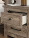 Details Made with engineered wood (MDF/particleboard/plywood) and decorative laminate for the right balance of affordability and durability, Deep brown finish over replicated hickory grain with authentic touch, Decorative laminate replicates natural or man-made material surfaces with consistent color, pattern and texture, Hardware with dark bronze-tone finish, 2 smooth-gliding drawers, Drawer interiors are lined with a faux linen laminate for a clean, finished look, 2 slim-profile USB charging ports, Power cord included; UL Listed, Assembly required