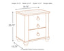 | Details | Made of engineered wood (MDF/particleboard) and decorative laminate, Whitewash replicated worn through paint with authentic touch, Replicated wood grained block pattern with authentic touch, Nightstand beautifully suits coastal cottage and shabby chic decor, 2 smooth-gliding drawers, Antiqued brass-tone ring-pull hardware, 2 slim-profile USB charging ports, Power cord included; UL Listed, Assembly required | |