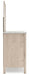Details Dresser and mirror, Made with engineered wood (MDF/particleboard/plywood) for the right balance of affordability and durability, Smooth, light finish with replicated oak grain, Replicated marble top , Handles with champagne colored finish, 6 smooth-gliding drawers, Round post legs, Drawer interiors are lined with a faux linen laminate for a clean, finished look, Mirror attaches to back of dresser; can also be mounted on wall horizontally or vertically , Safety is a top priority, clothing storage units are designed to meet the most current standard for stability, ASTM F 2057 (ASTM International), Drawers extend out to accommodate maximum access to drawer interior while maintaining safety