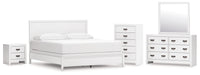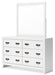 | Details | B427B9: Includes California king panel headboard, footboard, rails and slats, Made with hardwood solids, okoume veneer and MDF substrates, White finish, Foundation/box spring required, sold separately, Mattress available, sold separately, Assembly required, B427B1: Includes dresser and mirror, Made with hardwood solids, okoume veneer and MDF substrates, White finish, 6 drawers with dovetail construction and metal center guides, Hardware with dark finish, Drawer interiors are lined with a wood grain laminate for a clean, finished look, Mirror attaches to back of dresser, B427-46: Made with hardwood solids, okoume veneer and MDF substrates, White finish, 5 drawers with dovetail construction and metal center guides, Hardware with dark finish, Drawer interiors are lined with a wood grain laminate for a clean, finished look, B427-92: Made with hardwood solids, okoume veneer and MDF substrates, White finish, 2 drawers with dovetail construction and metal center guides, Hardware with dark finish, Drawer interiors are lined with a clean wood grain laminate for a clean, finished look, | |