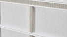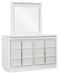 Details Includes dresser and mirror, Made with solid wood components, MDF substrate and decorative laminate, White lacquer finish, Vertical metal drawer pulls, Built-in LED lighting with 3-way dimmer switch, 6 drawers with fully finished interior, dovetail construction and heavy duty ball-bearing side glides, Drawers with rhinestone frames; textured laminate drawer fronts, Mirror attaches to back of dresser, Power cord included; UL Listed