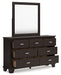 | Details | B441B4: Includes panel headboard, footboard, rails and slats, Made with hardwood solids, engineered wood veneer and MDF substrates, Dark brown finish, Floating panel headboard, Picture frame footboard, Foundation/box spring required, sold separately , Mattress available, sold separately, Assembly required, B441B1: Includes dresser and mirror, Made with hardwood solids, engineered wood veneer and MDF substrates, Dark brown finish, Metal bar pulls with bright nickel-tone finish, 7 smooth-gliding drawers with dovetail construction and metal center guides, Drawer interiors are lined with a wood grain laminate for a clean, finished look, Top moulding on dresser, Mirror attaches to back of dresser, B441-92: Made with hardwood solids, engineered wood veneer and MDF substrates, Dark brown finish, Metal bar pulls with bright nickel-tone finish, 2 smooth-gliding drawers with dovetail construction and metal center guides, Drawer interiors are lined with a wood grain laminate for a clean, finished look, Top moulding, | |