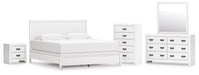 | Details | B427B8: Includes king panel headboard, footboard, rails and slats, Made with hardwood solids, okoume veneer and MDF substrates, White finish, Foundation/box spring required, sold separately, Mattress available, sold separately, Assembly required, B427B1: Includes dresser and mirror, Made with hardwood solids, okoume veneer and MDF substrates, White finish, 6 drawers with dovetail construction and metal center guides, Hardware with dark finish, Drawer interiors are lined with a wood grain laminate for a clean, finished look, Mirror attaches to back of dresser, B427-46: Made with hardwood solids, okoume veneer and MDF substrates, White finish, 5 drawers with dovetail construction and metal center guides, Hardware with dark finish, Drawer interiors are lined with a wood grain laminate for a clean, finished look, B427-92: Made with hardwood solids, okoume veneer and MDF substrates, White finish, 2 drawers with dovetail construction and metal center guides, Hardware with dark finish, Drawer interiors are lined with a clean wood grain laminate for a clean, finished look, | |