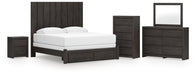 Fraluna King Panel Storage Bed with Mirrored Dresser, Chest and Nightstand