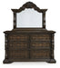| Details | B947B4: Includes upholstered panel headboard, upholstered panel footboard and panel rails, Made with hardwood solids, oak and ash swirl veneers, MDF substrates and cast resin components, Dark brown finish, Polyester upholstery with button tufting, Foundation/box spring required, sold separately, Mattress available, sold separately, Assembly required, B947B1: Includes dresser and mirror, Made with hardwood solids, oak and ash swirl veneers, MDF substrates and cast resin components, Dark brown finish, 6 smooth-gliding drawers with dovetail construction (top drawer felt lined), Drawer pulls with antiqued goldtone finish, Mirror attaches to back of dresser, B947-46: Made with hardwood solids, oak and ash swirl veneers, MDF substrates and cast resin components, Dark brown finish, 5 smooth-gliding drawers with dovetail construction (top drawer felt lined), Drawer pulls with antiqued goldtone finish, B947-93: Made with hardwood solids, oak and ash swirl veneers, MDF substrates and cast resin components, Dark brown finish, 2 smooth-gliding drawers with dovetail construction (top drawer felt lined), Pull-out tray behind bottom drawer, Drawer pulls with antiqued goldtone finish, 110V power supply with dual USB charging ports, Power cord included; UL Listed, | |