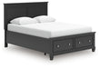 | Details | Includes panel headboard, storage footboard with roll slats and rails , Made with hardwood solids, birch veneer and MDF substrate, Side rails feature laminated solid hardwood slat support rails (or LVL) with glued and screwed blocking for added strength, Black painted finish, Round metal drawer knobs with satin nickel-tone finish, 2 smooth-gliding drawers with ball-bearing side glides in footboard, Tapered feet, Bed does not require additional foundation/box spring; accommodates most zero clearance adjustable bases with the addition of a bunkie board, Mattress available, sold separately, Assembly required | |