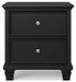 | Details | Made with hardwood solids, birch veneer and MDF substrate, Black painted finish, 2 smooth-gliding drawers with dovetail construction and ball-bearing side glides, Round metal drawer knobs with satin nickel-tone finish, Framed drawer fronts, Tapered feet | |