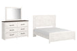 | Details | B1190B2: Includes headboard, footboard and rails, Made of engineered wood (MDF/particleboard) and decorative laminate, White rustic finish with replicated cedar grain, Foundation/box spring required, sold separately, Mattress not included, sold separately, Assembly required, Bed is compatible with an adjustable base, B1190B1: Includes dresser with mirror, Made of engineered wood (MDF/particleboard) and decorative laminate, White rustic finish with replicated cedar grain, Rustic gray planked replicated oak grain with authentic touch, 6 smooth-gliding drawers with faux linen lining, Large scale dark colored handles, Mirror attaches to back of dresser, Assembly required, | |