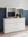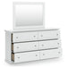 | Details | B139B41: Includes panel headboard/footboard and rails, Made with engineered wood (MDF/particleboard/plywood) and decorative laminate for the right balance of affordability and durability, Replicated solid white paint, Decorative laminate replicates natural or man-made material surfaces with consistent color, pattern and texture, Foundation/box spring required, sold separately, Mattress available, sold separately, Assembly required, B139B40: Includes dresser and mirror, Made of engineered wood (MDF/particleboard), Knobs with pewter-tone finish, Scalloped moulding, 6 smooth-operating drawers, Includes tipover restraint device, Mirror attaches to back of dresser; can also be mounted on wall horizontally or vertically, Safety is a top priority, clothing storage units are designed to meet the most current standard for stability, ASTM F 2057 (ASTM International), Drawers extend out to accommodate maximum access to drawer interior while maintaining safety, B139-91: Made of engineered wood (MDF/particleboard), Pewter-tone knobs, 1 smooth-operating drawer, 1 storage cubby, Scalloped moulding, Small Space Solution, | |