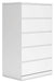 Create the modern bedroom of your dreams. This chest of drawers offers a minimal design with maximum style, combining ultra-clean lines and an easy-elegant solid white finish with a hardware-less aesthetic. Spacious drawers with ball-bearing glides make putting things away a snap.