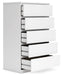 | Details | Made with engineered wood (MDF/particleboard/plywood) and decorative laminate for the right balance of affordability and durability, Solid white finish, Decorative laminate replicates natural or man-made material surfaces with consistent color, pattern and texture, 5 smooth-gliding drawers with ball-bearing side glides; vinyl-wrapped sides and back for durability, Safety is a top priority, clothing storage units are designed to meet the most current standard for stability, ASTM F 2057 (ASTM International, Drawers extend out to accommodate maximum access to drawer interior while maintaining safety, Assembly required | |