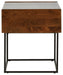 A posh and polished look for a contemporary aesthetic, this striking end table features solid mango wood, a natural marble tabletop and a slim metal base. Designed with an open cubby shelf for extra storage, this beautiful table easily complements modern seating arrangements.