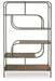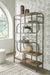 Details Shelves made of hickory veneer and engineered wood, Metal frame, Frame with antiqued silvertone finish, 5 fixed shelves with brown finish, Assembly required