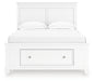 | Details | Includes panel headboard, storage footboard, rails and roll slats , Made with hardwood solids and MDF substrate, Side rails feature laminated solid hardwood slat support rails (or LVL) with glued and screwed blocking for added strength , White painted finish, Round metal drawer knobs with satin nickel-tone finish, Tapered feet, 2 smooth-gliding drawers in footboard , Bed does not require additional foundation/box spring; accommodates most zero clearance adjustable bases with the addition of a bunkie board , Mattress available, sold separately, Assembly required | |