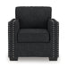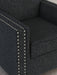 This stunning chair leaves a lasting impression. Its cozy cushions, chic coal-colored upholstery and striking nailhead trim are a perfect blend of comfort and contemporary design. And here’s the showstopper—ambient red, white and blue LED lighting along the chair's base. The look is simply wow.