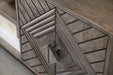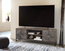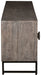 | Details | Made with wood, Distressed gray finish, Metal base with black finish, Door fronts with diamond pattern, 2 doors with soft-close hinges, 3 shelves, Openings in back for electronics, Assembly required | |