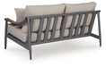 A refined marriage of style and durability, this outdoor loveseat adds contemporary flair to your porch or patio. Wood tones and shades of gray lend a versatile, neutral appeal. And this loveseat is built to last, thanks to its rust-resistant frame and cleanable, UV-resistant fabric.