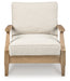 This outdoor lounge chair effortlessly pairs natural beauty with must-have durability. Its eucalyptus wood frame withstands the elements while making a high-style impression. And you can relax on the porch or poolside without the stress of added upkeep—this chair's UV-resistant performance fabric is a breeze to clean.