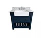 Trendy and timeless, this bathroom vanity set in a high end furniture style will revamp your bath or powder room. It is 100% Solid wood and ships fully assembled. Soft closing drawers add extra storage options, an open shelf adds ample storage and decorative space. The vanity is topped with an authentic Carrara marble countertop, 3/4" thick with a 4" high backsplash. The vanity top is pre-drilled for standard 8" widespread faucet. Includes matching mirror.