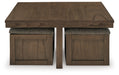 Elevate your entertainment experience with this coffee table with stools. A functional companion for your seating area, it’s defined by a richly versatile finish. Instantly upgrade game days and movie nights—the four stools wheel out easily with casters, tucking away neatly under the table when you’re done. And with storage under the top of each stool, you can keep essentials on hand and out of sight.