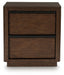 Casual contemporary styling with a decidedly modern vibe. This nightstand is warm and inviting with a rich dark brown finish, adorning your restful retreat with on-trend elegance. Full-length metal pulls in a matte black finish add a subtly cool touch to spacious bedside storage drawers. What a simply stunning way to achieve the bedroom of your dreams.