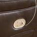 Load up on comfort in a cool, clean-lined and contemporary way with this power reclining loveseat with console in chocolate brown. Rest assured, the expertly matched leather and faux leather upholstery is enriched with a pebble grain effect for authentic appeal and enhanced with jumbo stitching for dramatic contrast. It features a one-touch power control with adjustable positions, along with an Easy View™ adjustable headrest that allows a primo view of the TV even when you're reclined. Extended ottomans provide extra length for leg comfort. A zero-draw USB plug-in at your fingertips lets you charge up as you chill out.