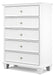 | Details | Made with hardwood solids and MDF substrate, White painted finish, Round metal drawer knobs with satin nickel-tone finish, Tapered feet, Framed drawer fronts, 5 smooth-gliding drawers with dovetail construction and ball-bearing side glides | |