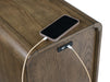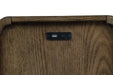 Details Made with wood, veneer and engineered wood, Warm brown finish, Curved edge details, 2 drawers, Pull-out tray, USB-A and USB-C charging ports, Power cord included; UL Listed
