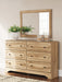 Details PCB1075B8: Includes panel headboard and footboard with rails, Made with engineered wood (MDF/particleboard/plywood) and decorative laminate for the right balance of affordability and durability , Warm replicated oak grain finish , Decorative laminate replicates natural or man-made material surfaces with consistent color, pattern and texture, Foundation/box spring required, sold separately , Mattress available, sold separately, Minor assembly required, PCB1075B1: Includes dresser and mirror, Made with engineered wood (MDF/particleboard/plywood) and decorative laminate for the right balance of affordability and durability, Warm replicated oak grain finish, Decorative laminate replicates natural or man-made material surfaces with consistent color, pattern and texture, Dark nickel-tone knobs, 6 smooth-gliding drawers, Drawer interiors are lined with a faux linen laminate for a clean, finished look, Mirror attaches to back of dresser; can also be mounted on wall horizontally or vertically, Safety is a top priority, clothing storage units are designed to meet the most current standards for stability, ATM F 2057 (ASTM International) , Drawers extend out to accommodate maximum access to drawer interior while maintaining safety, Minor assembly required,