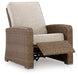 Details All-weather resin wicker handwoven over rust-resistant aluminum frame with durable powder coated finish, Powder coated steel recliner mechanism, Press-back reclining motion, Solution-dyed high-performance fabric, Nuvella is an outdoor fabric that can be cleaned and offers UV resistance, Clean fabric with mild soap and water, let air dry; for stubborn stains, use a solution of 4 oz. bleach to 28 oz. water, Stainless steel hardware, Designed to withstand the harsh elements of the outdoors, Assembly required