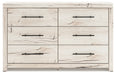 | Details | Made with engineered wood (MDF/particleboard/plywood) and decorative laminate for the right balance of affordability and durability, Rustic white finish over replicated reclaimed oak grain with authentic touch, Decorative laminate replicates natural or man-made material surfaces with consistent color, pattern and texture, Handles with dark pewter-tone finish, 6 smooth-gliding drawers, Drawer interiors are lined with a faux linen laminate for a clean, finished look, Framed front and pilasters, Safety is a top priority, clothing storage units are designed to meet the most current standard for stability, ASTM F 2057 (ASTM International), Drawers extend out to accommodate maximum access to drawer interior while maintaining safety, Minor assembly required | |