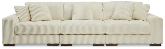 Plush and posh. Showcase your eye for on-trend texture with the statement-making cord upholstery of this sectional sofa. Its stunningly soft fabric entices in an ivory hue, complementing contemporary color palettes. Sink into the cushions and plan to stay a while—this cozy living room centerpiece highlights your high-end approach to comfort and style.