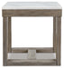 This square end table is simple in design but big on style. Finished with a trend-right grayish brown wood tone, its bold, blocky profile and natural marble top are timeless classic choices that work so well with a variety of settings. Adding to its beauty, the marble top's color variations, fissures, mineral deposits and veining are naturally formed and are not defects.