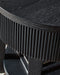 Classic and cool in dark charcoal, this end table brings contemporary convenience to your living room. Short on storage? The trendy reeded apron conceals a drawer perfect for remotes, controllers and other entertainment accessories. What a perfect marriage of style and functionality.